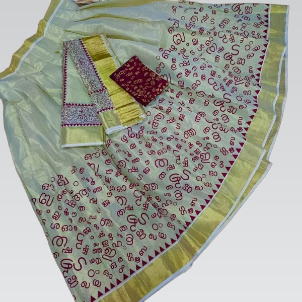 Aksharamala Gold Tissue Dhavani Set for Women | Traditional Kerala Style Half Saree