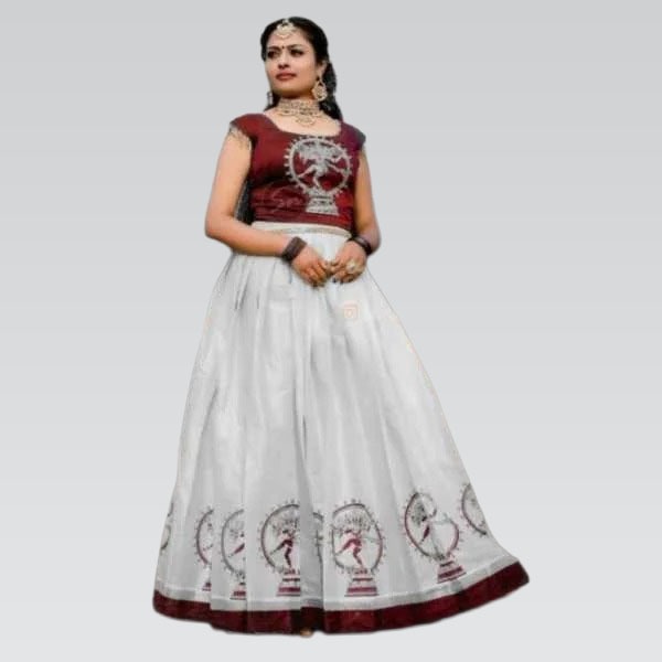 Gold/silver Tissue Dhavani set with handwork design